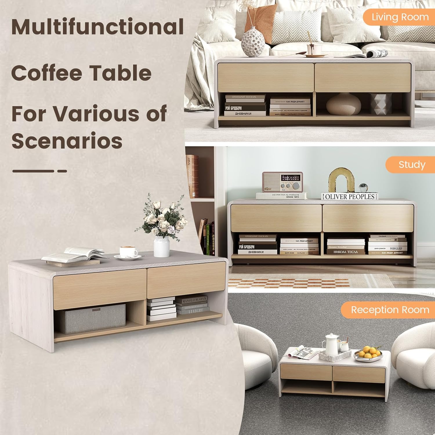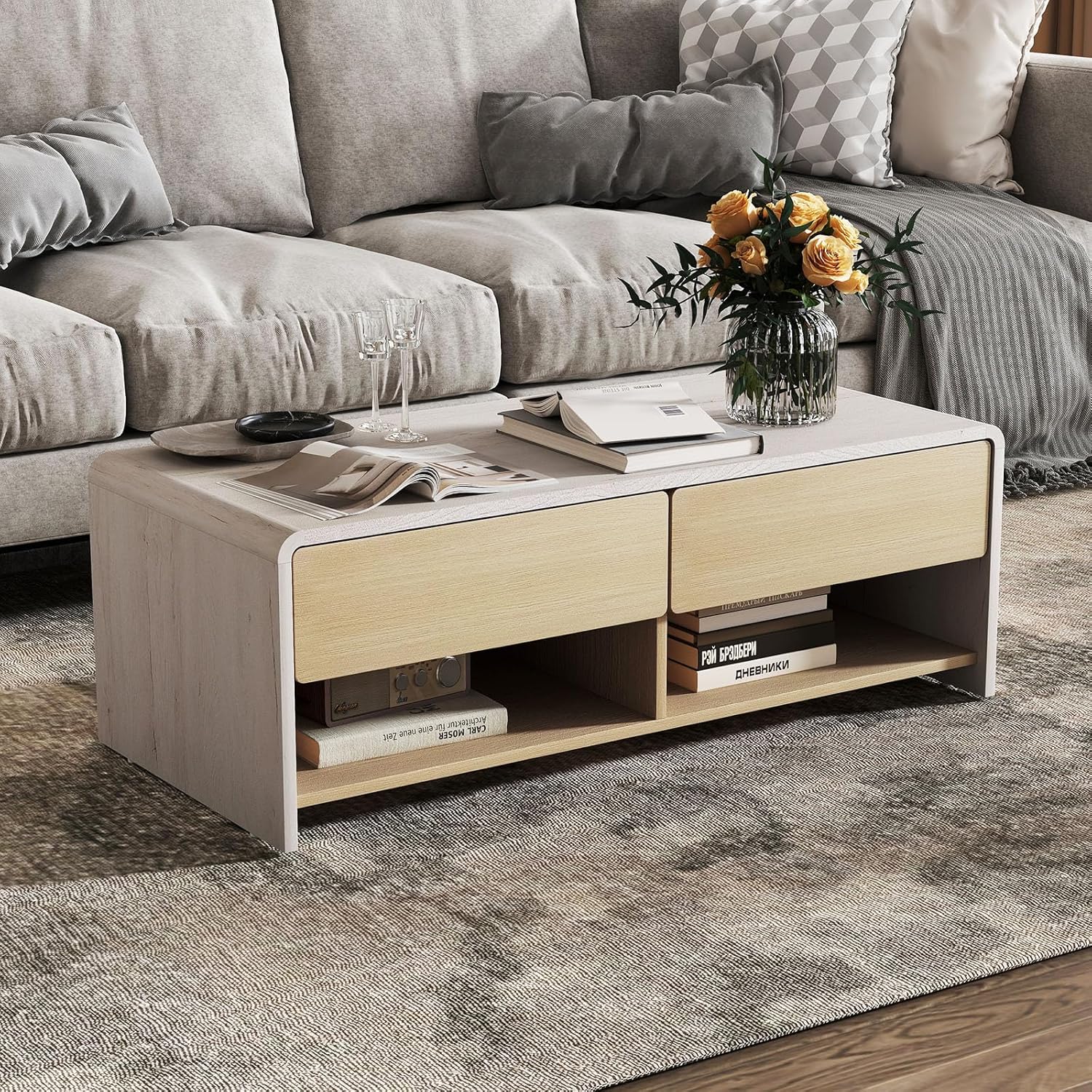 Transform your living room into a serene oasis with a coffee table that cleverly hides clutter. Spacious top and hidden drawers keep essentials tidy while adding elegance.