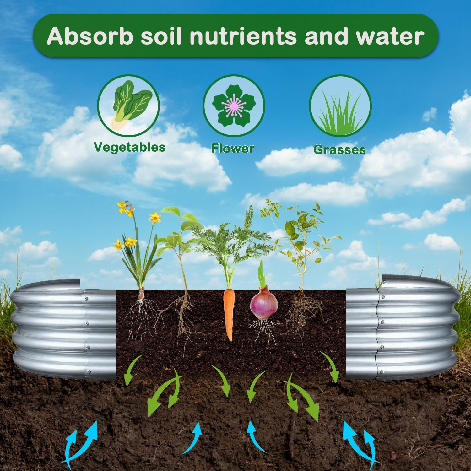 Our galvanized garden planter box is rust-resistant, ensuring your plants thrive season after season without the hassle of replacing your garden beds. Enjoy beautiful, uninterrupted growth all year long.