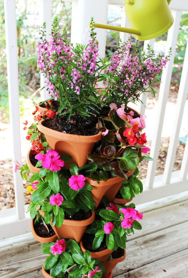 Transform your small balcony or patio into a lush garden with these space-saving stackable planters, making it easy to grow more plants in less space.